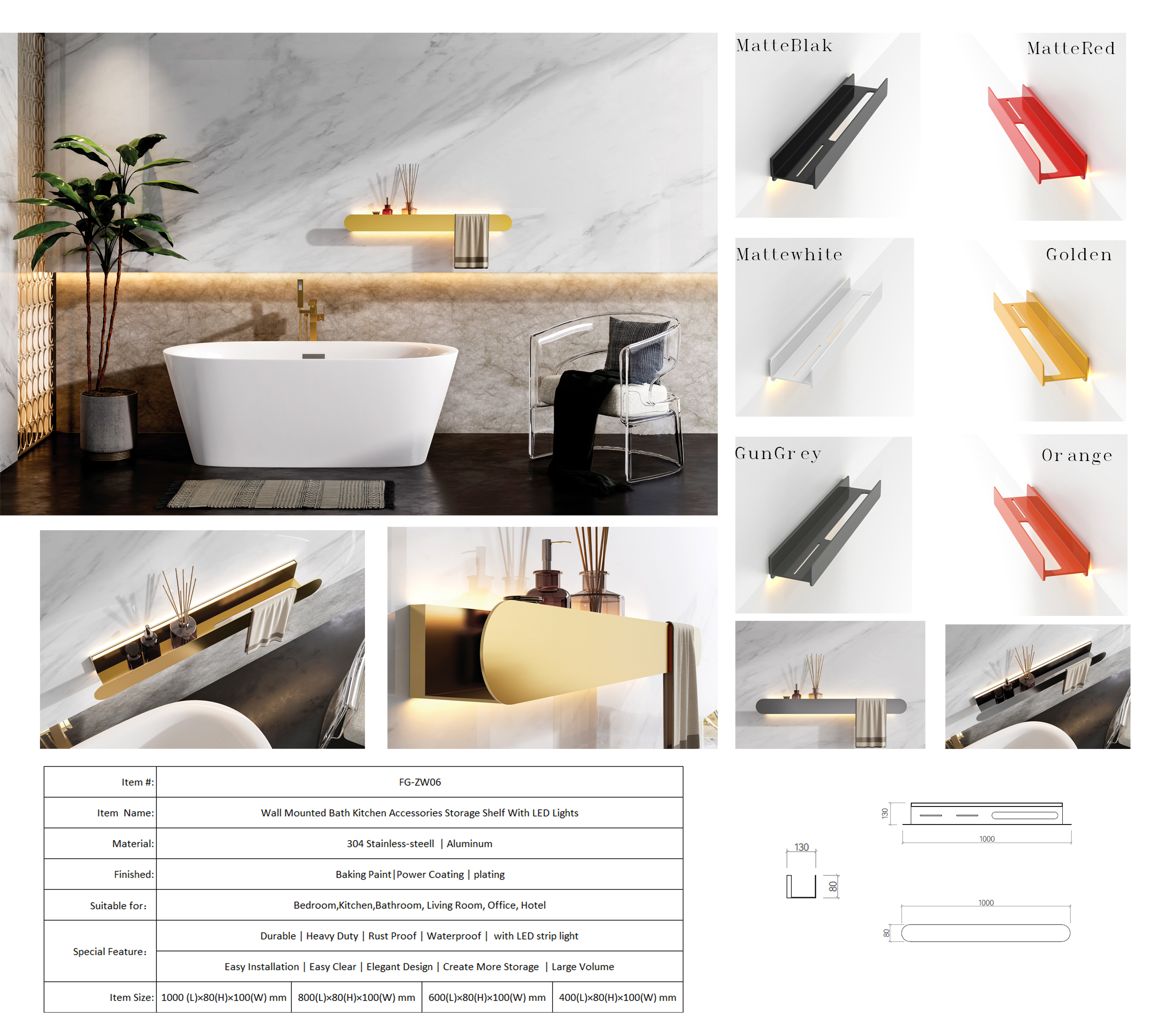 Wall Mounted Bath Kitchen Accessories Storage Shelf With LED Lights
