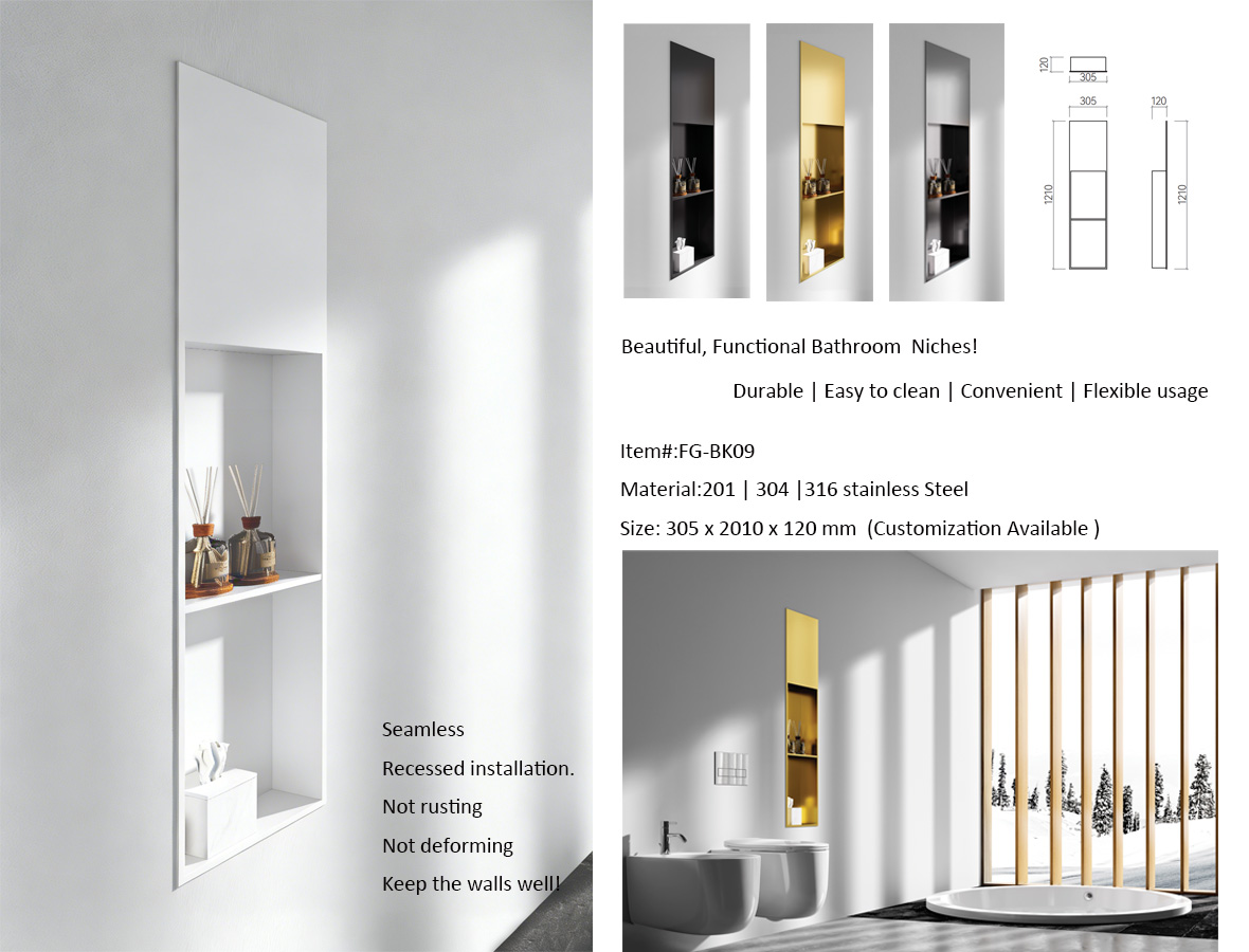 Seamless Architectural Integration: Designed for a seamless recessed installation, it maintains the structural integrity and visual flow of the wall while keeping the bathroom looking expansive.